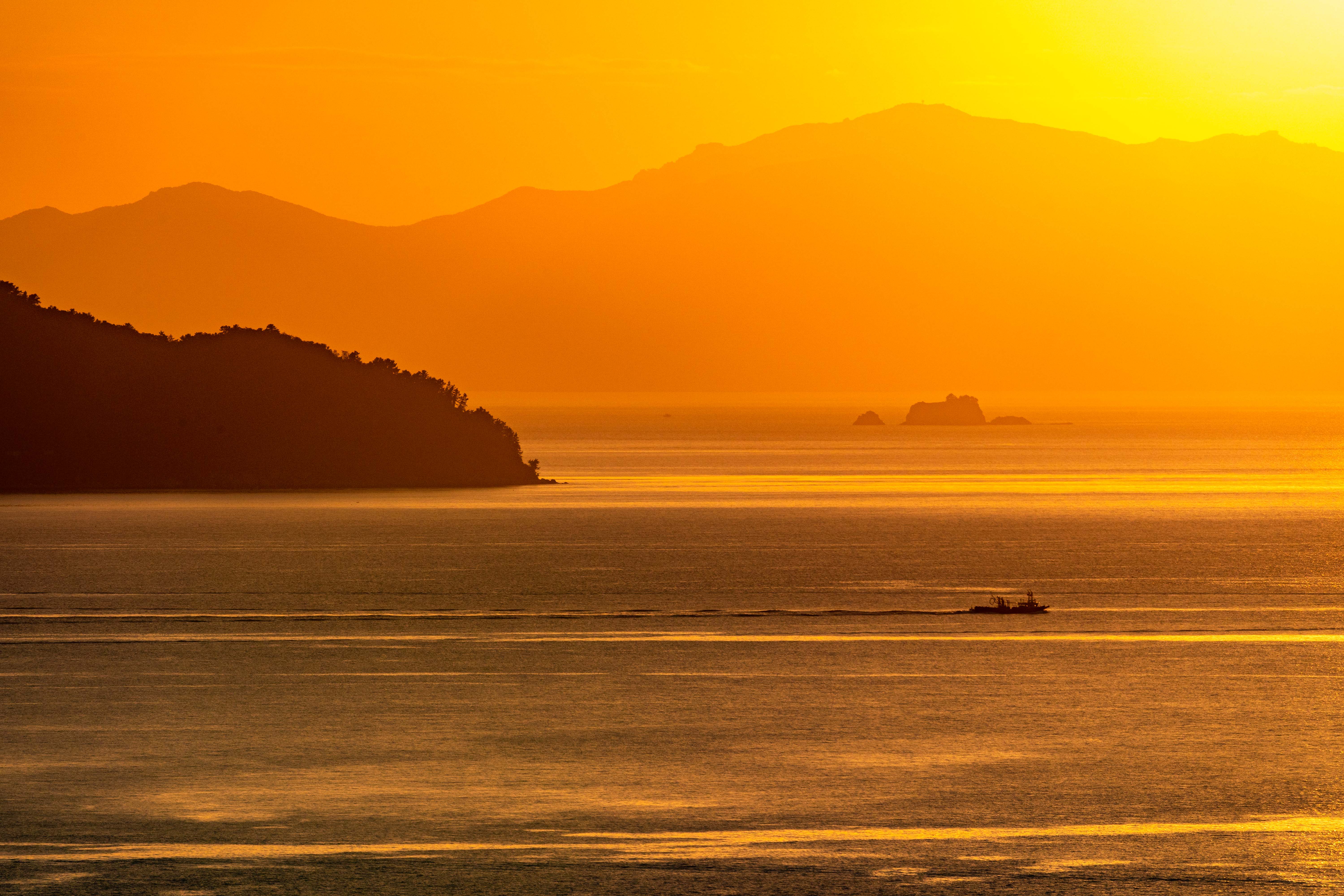 멀리 작은 배 한척이 어업을 마치고 돌아옵니다.
