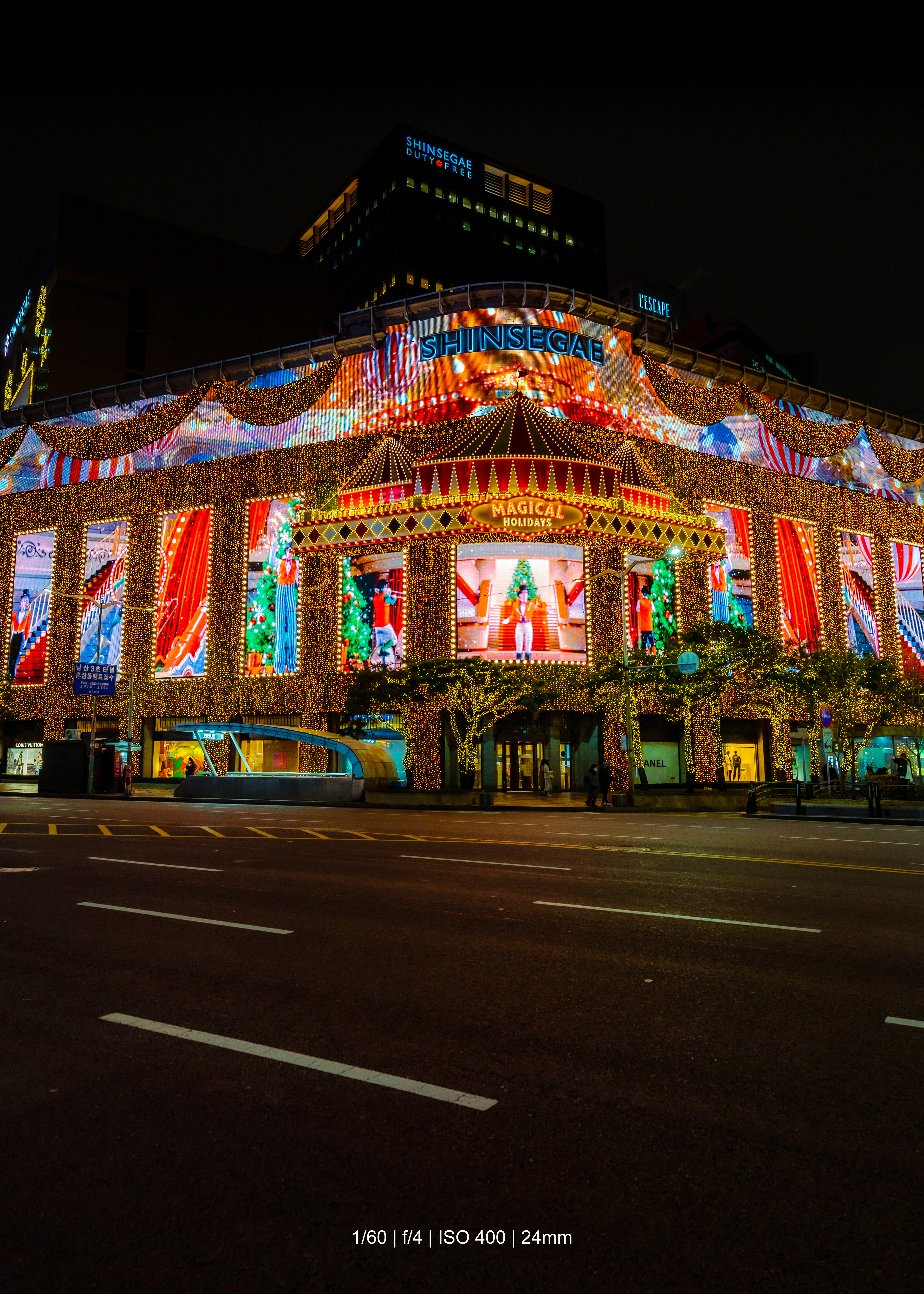 줄서서 찍는 명동 신세계 백화점의 크리스마스 전경입니다.