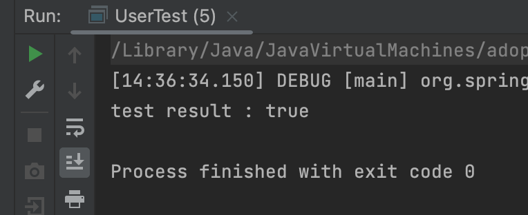 그러나 main()을 통한 테스트는 여러 문제점이 있습니다. 일단 수동으로 테스트 결과를 확인해야 합니다. test result가 성공인지 아닌지를 알기 위해 위 코드에서 가져온 User의 이름이 "팜하니" 인지 아닌지를 검사했습니다.