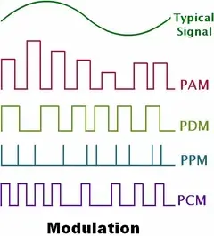 - 매우 짧은 시간 동안 진행되는 네모모양의 전자기 파형. 주로 디지털 녹음에서 쓰이는 변조 방식