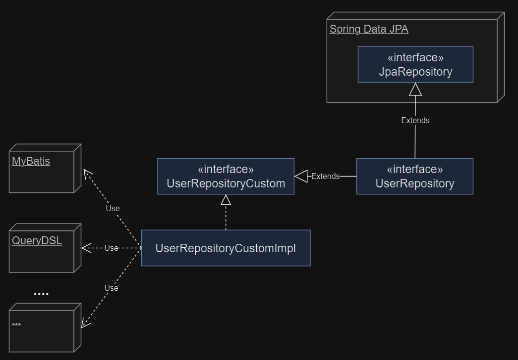 *RepositoryCustom에 Spring Data JPA API가 아닌 DB에 의존하는 로직들을 넣어둔다. 따라서 Custom 구현체는 Mybatis, queryDSL 등의 API에 의존한다. 이번 batch insert도 Custom구현체에 MyBatis를 사용하여 구현하였다.