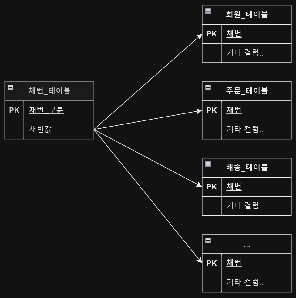 채번(採番)이란 번호를 딴다는 의미로 번호표의 목적으로 DBMS에서 PK 혹은 고윳값을 부여할 때 사용하는 용어다. 일본말이라고 함. 채번되는 값이 업무적으로 의미 있는 값이건, 단순 고윳값이건 각각의 목적이 충분히 존재한다. 나의 경우 고객에게 노출하는 값은 아니었지만 고윳값을 가지면서 SELECT도 가능해야 했다. (이건 이후에 후술)