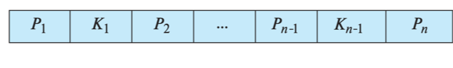 - K : search key 값, (n-1) 개, K1, K2, ..., K(n-1)
