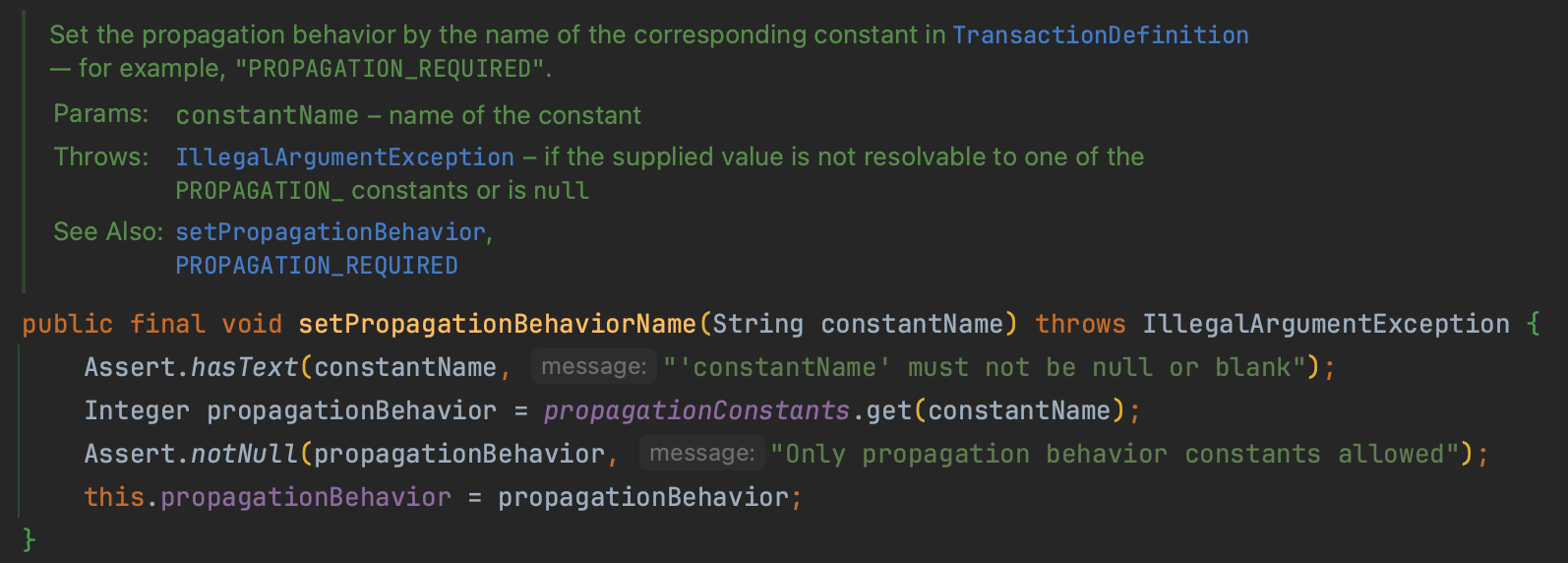 DefaultTransactionDefinition에는 아래처럼 트랜잭션 전파 속성을 지정할 수 있다.
