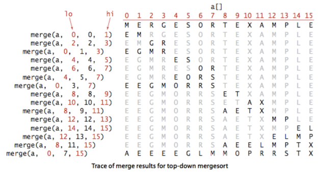 merge(a, lo, lo + sz - 1, Math.min(lo + sz + sz - 1, N - 1)); // 병합