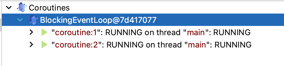 IntelliJ Debug 탭을 사용하면 실시간 코루틴 정보를 얻을 수 있다. 위 캡처화면은 코드의 break point 부분에서 확인한 현재 코루틴의 상황이다. 보시다시피 runBlocking은 body 실행과 동시에 새로운 해당 스코프의 자식 코루틴을 만들어 실행한다. 이는 해당 빌더 docs에서도 확인이 가능하다. 그러나 coroutineScope {} 빌더는 main 스레드를 실행하던 코루틴에서 이어서 계속 실행되는 것을 볼 수 있다.