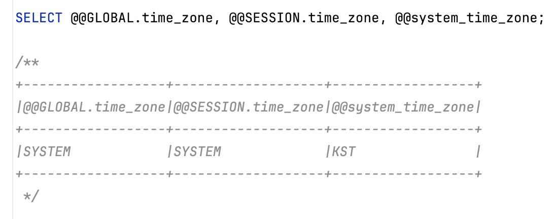 - time_zone : 세션 (커넥션)별 타임존 정보