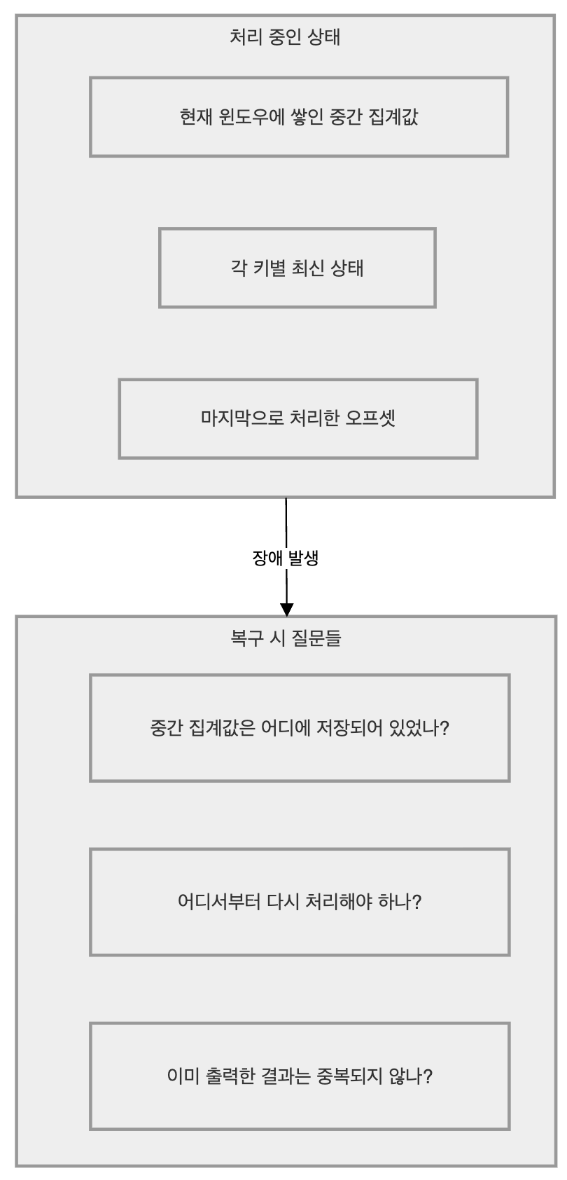 - Checkpoint 실패 시 트랜잭션은 abort되고, 소스 오프셋이 롤백되어 재처리된다.