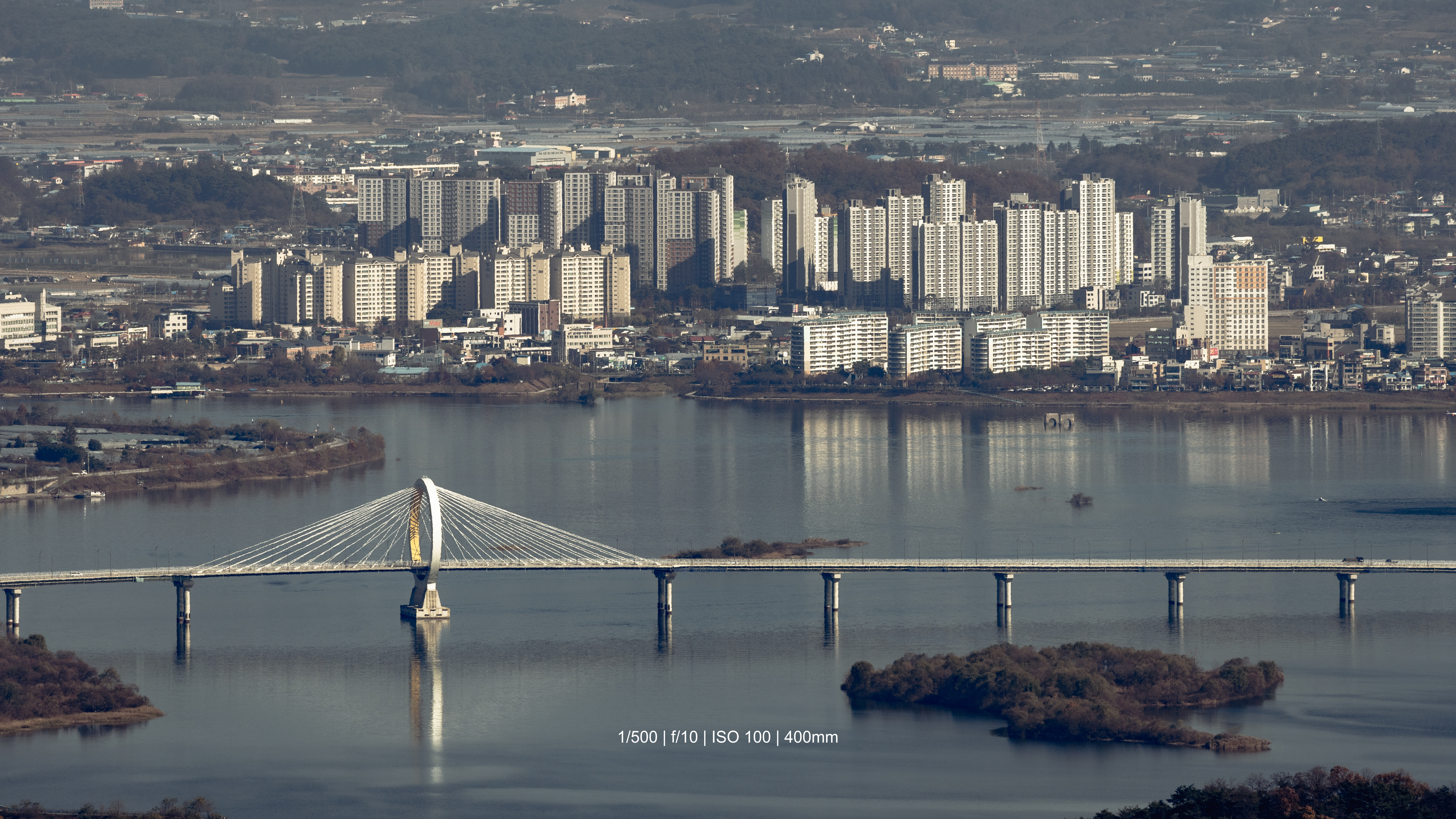 멀리 춘천대교가 보여 400mm로 당겨봤습니다.