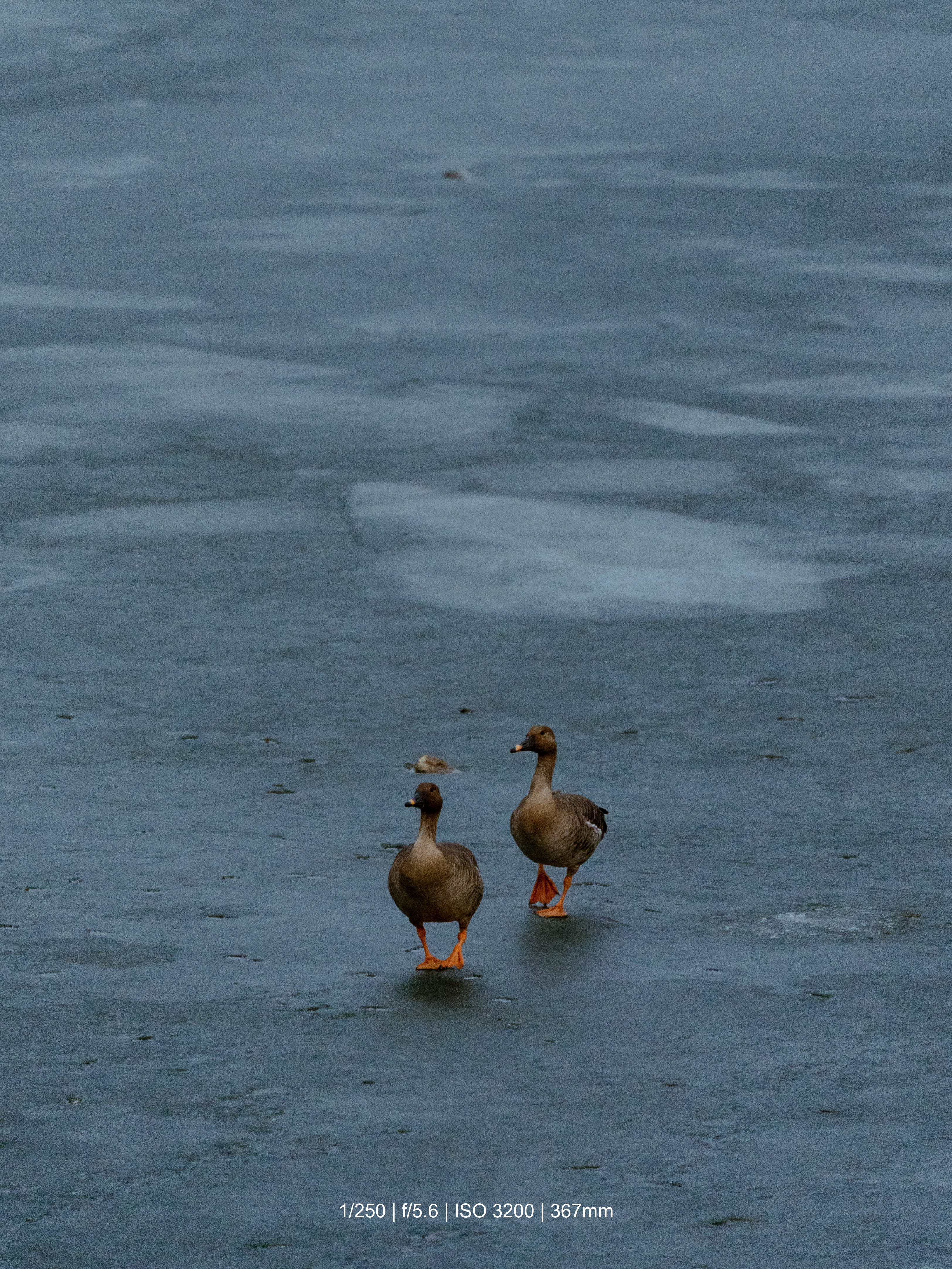 한강 위로 걸어 다니는 큰부리큰기러기. 발 시리겠다.