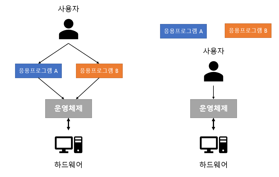 - 사용자가 하드웨어를 사용할 수 있도록 매개체