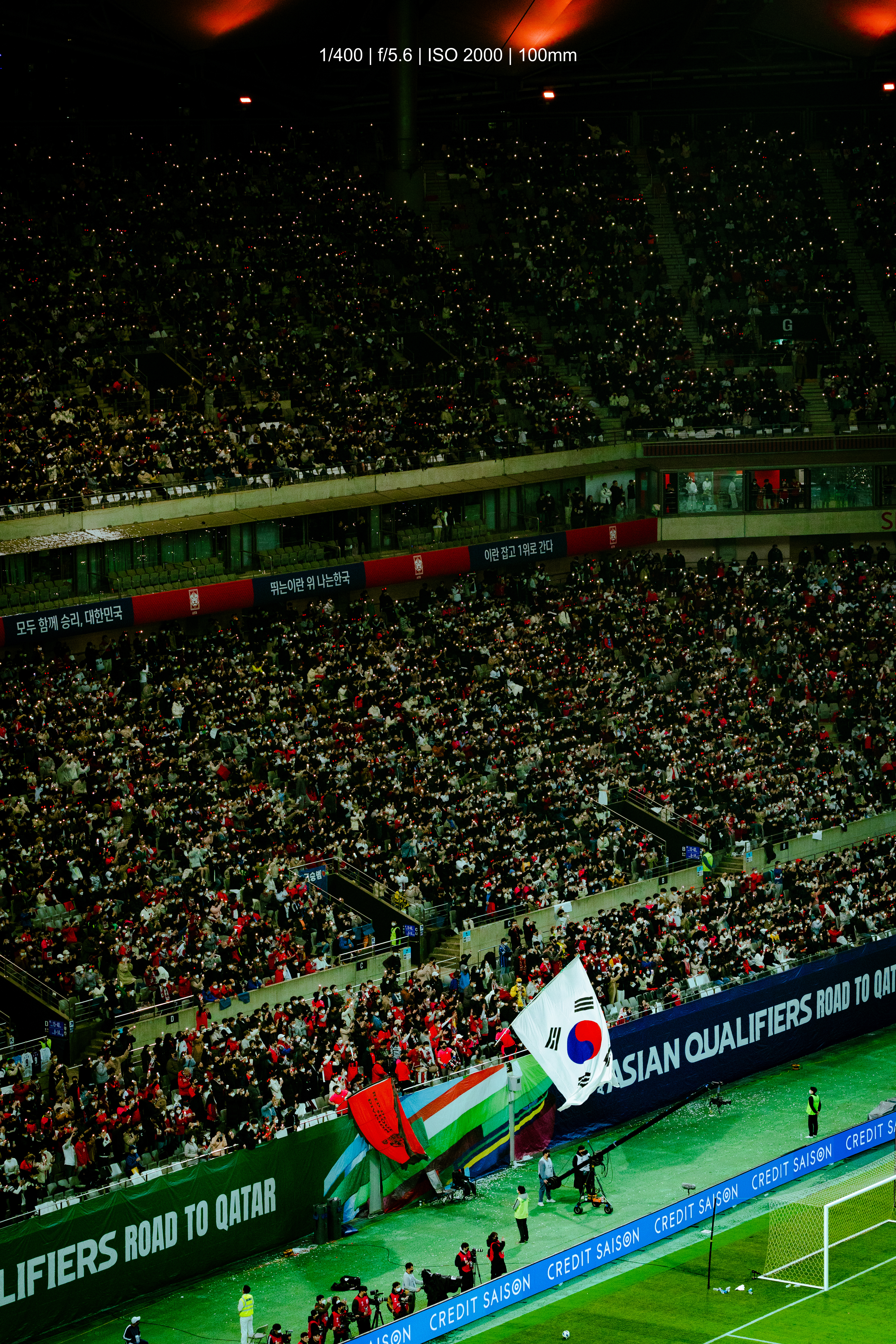 이날 전석이 매진이었습니다. 경기 후반전 막바지 즈음부터는 휴대폰으로 라이트를 비춰 응원을 시작했습니다. 원래는 아리랑도 육성으로 같이 부르지만 이 날은 스피커로 나왔던 거 같네요.