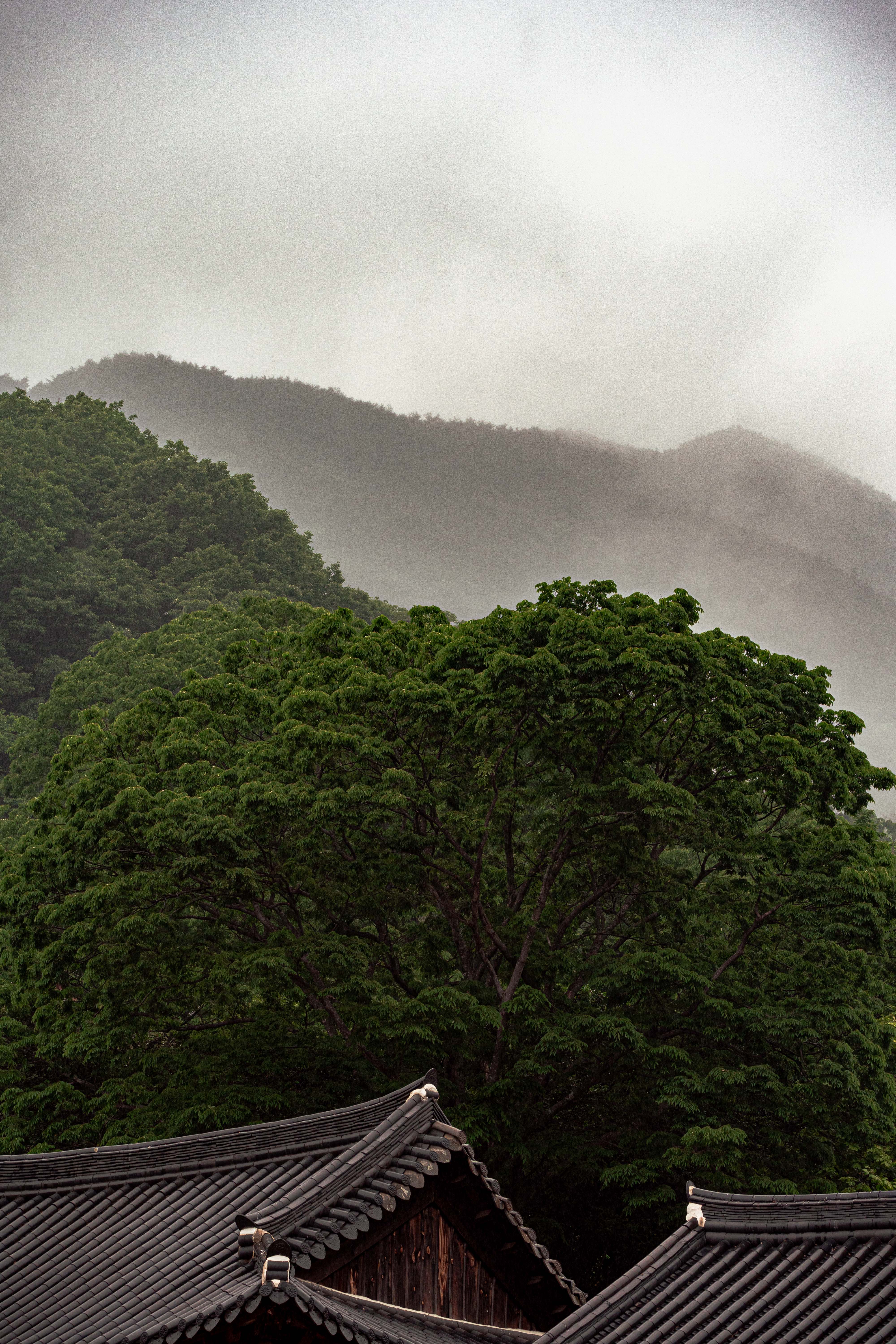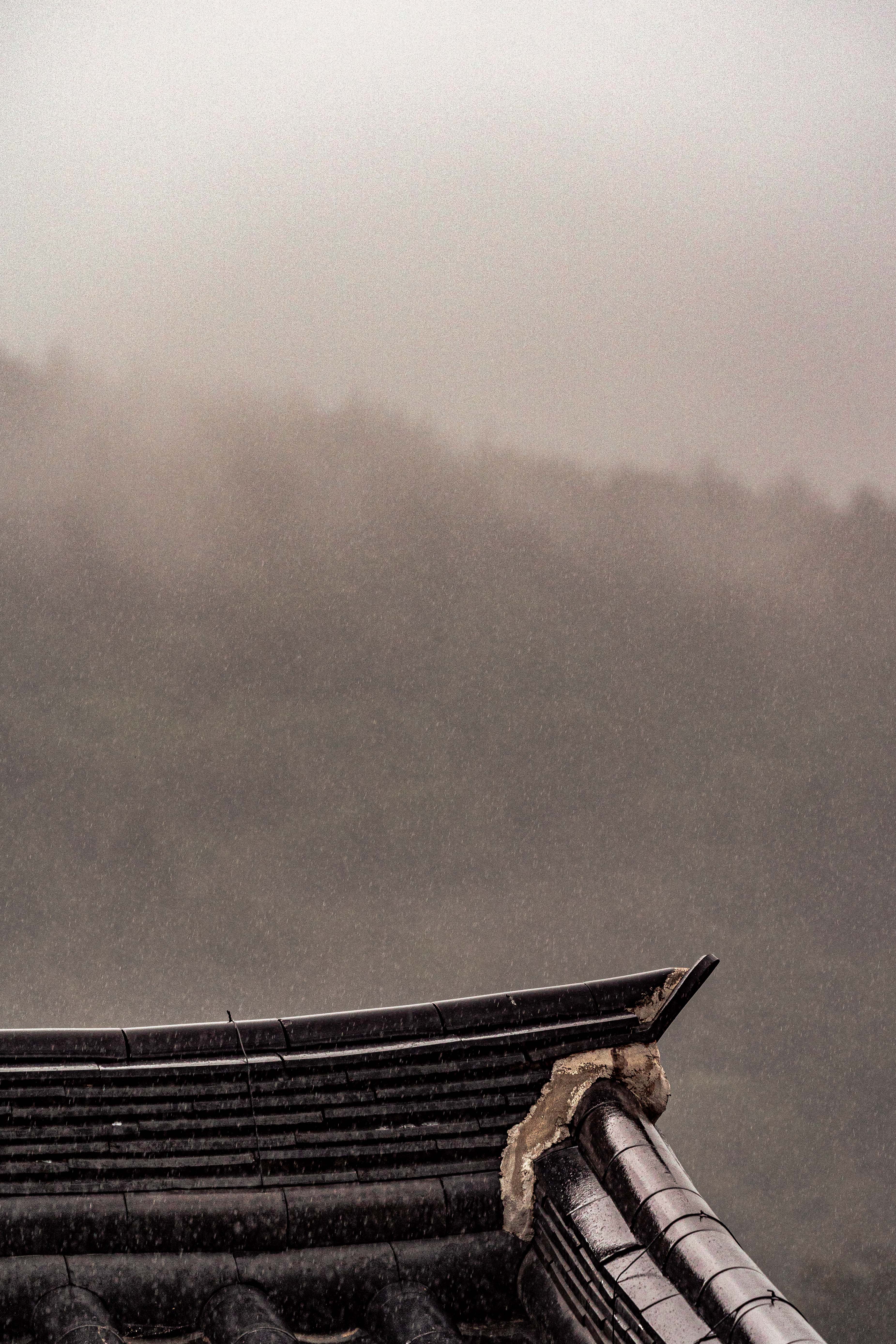 둘째날 화엄사에 들렀을 때는 소나기가 내렸다. 화엄사 처마 밑에 앉아 비 오는 풍경을 바라보며 멍 때리는 시간은 이번 여행에 가장 큰 여운을 남긴다. 비를 맞는 절의 냄새와 처마 너머로 보이는 안개 짙은 지리산의 풍경은 한없이 자신을 낮추게 한다. 아무 생각이 들지 않았고, 평화롭기도, 또는 음산하기도 하다.